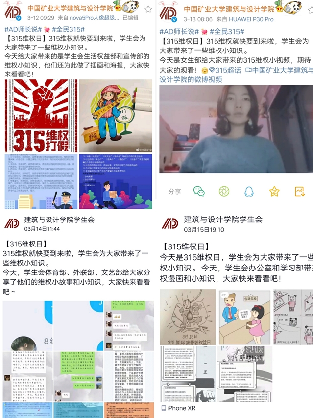 为加强学生消费维权的意识,建筑与设计学院学生会生活权益部于3月12日至3月15日在线上进行“315国际维权日”宣传活动。