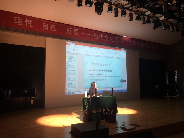 11月25日19点,建筑与设计学院音乐系于设计学院报告厅举办了“理性,自在,反思——当代文化语境下的筝乐作品解读”主题讲座。本次讲座由中国音乐家协会古筝学会理事、中国音乐金钟奖作曲比赛银奖获得者刘文佳老师主讲,设计学院音乐系主任刘振主持讲座,音乐系全体师生及校内外音乐爱好者前来聆听。