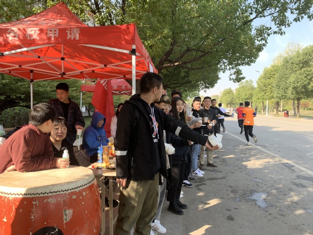 和参赛选手同样拼搏在赛场上的还有补给点工作人员。设计学院补给点主要由设计学院学生会成员组成,职责主要是为运动员提供饮用水、补充体力的食物以及基本的医疗急救必需品。为了更高效地完成志愿服务活动,工作人员在早晨7点就开始布置补给点,将所有食物、水等物资按时运送到了学院站点,为此次志愿服务做好充分的后勤保障工作。比赛进程中,补给站工作人员们恪尽职守,细心服务,为参赛选手递去补给食物、水,并且不断地鼓励呐喊,为他们加油打气。他们成为赛道旁一道亮丽的风景线。因为志愿服务人员的出色表现,设计学院补给点被选为中国矿业大学半程马拉松比赛优秀补给点。