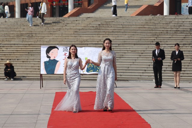 活动伊始,伴随着音乐的响起,各个学院依次出场。设计学院女生部吴昔潞、罗筱倩、杨淼、柳沅宜四位同学两两结伴走上红毯。她们举止端庄、仪态优美,精彩的走秀赢得了观众的喝彩。走秀结束后,设计学院女生部副部长黄辰嫣然向校学生会评委讲解了设计学院“礼美华夏,仪美芳华”的主题展板。她说到:“日晷是矿大东门的标志物,喜鹊带来喜事,而竹子寓意节节高升,借此表达对矿大及礼仪文化月的美好祝愿。”最后,设计学院女生部部长宋禹凝组织部员,对接下来礼仪文化月活动筹备和礼仪文化月晚会的前期准备做出工作部署,保障了后期工作的顺利进行。