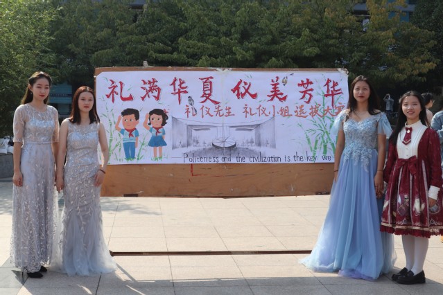 为弘扬传统礼仪文化、彰显学生知书达理的风范,10月19日上午11点,由共青团中国矿业大学委员会、中国矿业大学妇女委员会主办的以“颂七十华诞,扬礼仪之风”为主题的礼仪文化月启动仪式在二食堂广场举行。