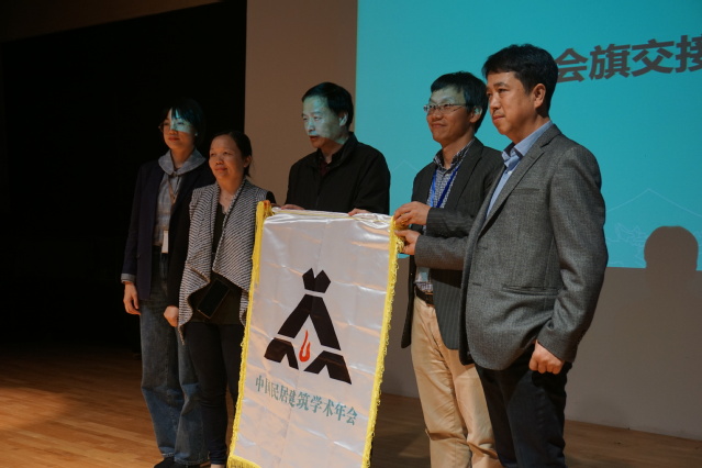 活动结束后,本届中国民居建筑学术年会主办方代表中国矿业大学建筑与设计学院林祖锐教授和常江教授,与下一届中国民居建筑学术年会承办方代表西南民族大学城市规划与建筑学院院长赵兵教授、系主任刘艳梅副教授和王赛兰博士进行会旗交接仪式。之后,下一届中国民居建筑学术年会承办单位代表赵兵教授介绍承办方案。赵兵教授介绍了西南民族大学的概况,表达了西南民族大学承办会议的强烈意愿,并通过视频展示了西南民族大学的历史沿革及发展现状,同时还汇报了对下一届中国民居建筑学术年会所做的准备及期望。系主任刘艳梅副教授介绍了建筑学专业的基本情况。