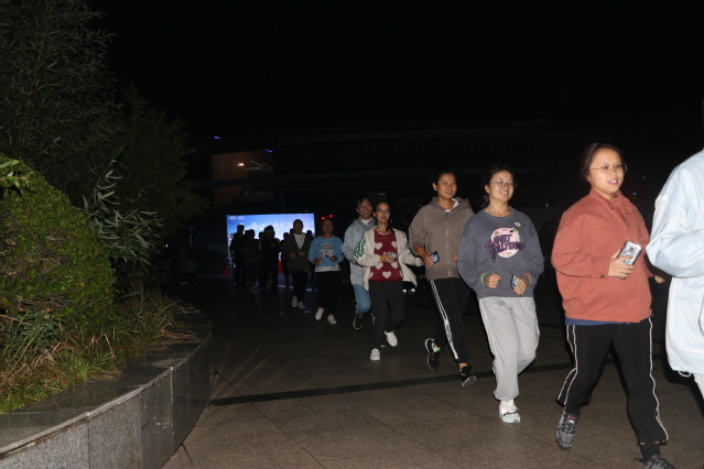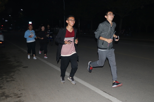 本次公益跑中每有一个参与者累计里程达到7公里,即可为对口扶贫地的70岁以上乡村老人捐出一份免费体检和食品礼盒。开幕式上,安全学院的周宗正同学演唱歌曲《不忘初心》,唱出了公益的热情,展现了奉献的精神。开幕式最后全体参与者合唱的《我和我的祖国》将晚会气氛推向高潮。开幕式结束后,公益跑正式开始,参与者分成多个小队在已定的路线上跑步打卡,经过四个打卡点后,回到起点第二次签到。由于刚下过小雨,路面湿滑,给参与同学带来了诸多不便,但这并没有影响他们高涨的情绪。晚9时许,所有参与者完成公益任务,虽然疲惫,但更多是喜悦。至此本次公益跑圆满结束。