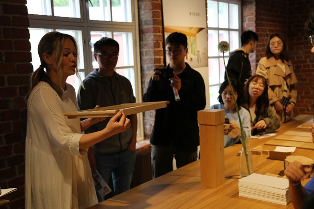 本土设计师交流在菲斯卡斯(Fiskars)艺术小镇、ARABIA工厂和芬兰本土设计师工作室进行。Fiskars艺术小镇是历史悠久、世界闻名的设计之乡,由工匠、艺术家、设计师的工作坊或企业组成。芬兰知名企业菲斯卡斯就是1649年从这里起步,设计了其标志性的塑料手柄人体工学剪刀,著名的伊塔拉(Littala)玻璃制品、园艺工具等也是其旗下品牌。在小镇中,同学们还参观了成立于1967年高品质可持续木材设计制造商NIKARI,设计总监JOHANNA VUORIO女士介绍了NIKARI的坚持实木制造与手作的设计理念以及企业发展历程,并与同学们进行了深入交流。在ARABIA工厂,Littala品牌的华裔设计总监黄韬博士,带领大家参观了企业博物馆以及设计创作室。为同学们深入讲解了品牌在发展节点中的典型设计案例,并且,在设计创作室中详细介绍了陶瓷制品的创作案例以及分享了自己的设计体会,认为要做好设计,就必须要将材料、工艺以及设计师个人风格做到融会贯通。在赫尔辛基市中心的Loupedeck OY工作室,设计师Elina Aalto女士为大家讲解工作室的一些产品的设计理念和设计方法,详细讲解了3d打印、脱模制作等模型制作工艺。工作室自创的“1+1+1”方法让人印象深刻。他们邀请3位来自不同国家的设计师在设计出同一主题的作品后,将产品拆分成3部分,然后3位设计师再随机组合,形成了风格各异的全新作品。