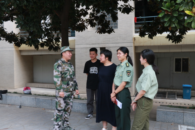 自军训动员大会开始,建筑与设计学院的领导和老师们一直高度关注军训状况。9月2日上午10时,设计学院党委副书记范韶维来到军训训练场进行检查指导,了解学生们首日训练的进展情况,并与承训教官、新生辅导员和参训学生进行亲切交谈。