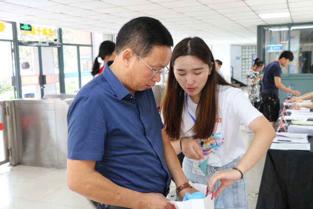 8月26日,正式迎新第一天,新生报到顺利有序地进行中。上午9点,建筑与设计学院党委书记龙景奎、院长罗萍嘉、党委副书记范韶维来到设计学院迎新现场检查指导迎新工作,给新生和家长送去了亲切的问候。