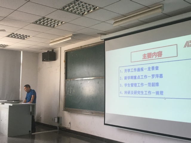 会上,龙景奎书记分别从学校层面、学院层面和党建工作三方面展开讲话。龙书记向全体教职工传达了学校召开的新学期工作研讨会和干部教师大会的会议内容以及学校2019级新生报到情况。龙书记还向大家介绍了新入职的教师,同时详细介绍了近期学院工作内容。在党建工作方面,龙景奎书记强调,学院的“六风建设”要继续深入推进和评比,尤其是师德师风建设,要把方向,谋大局,定政策,推改革,促发展,同时,教工党员“五个一”工程要落到实处,发挥党员的先锋模范作用。接着,罗萍嘉院长对学院新学期重点工作进行汇总分析。罗院长提到,要重视即将到来的第五轮学科评估,希望各位教职工支持学院工作,心系学院发展,对自己严格要求,实现学院更进一步的发展。范韶维副书记对学院部分人员及办公地点的调动、学院2019级新生报到情况和近日重大事项的时间节点进行了通报。最后,姚君副院长对上半年的科研及研究生工作进行了汇报,并对下半年相应的工作进行了任务布置。姚君副院长指出,在下半年要认真准备学科评估工作,以服务促进科研工作,切实提升研究生培养质量,号召大家继续共同做好全员育人工作,为学院人才培养工作贡献智慧和力量。