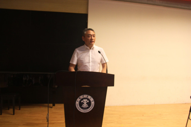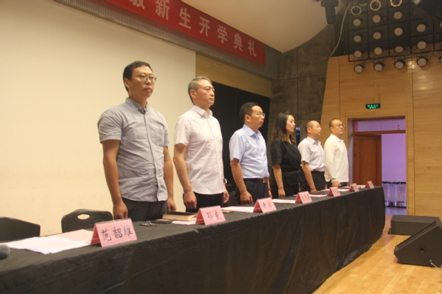 伴着雄壮的国歌声,开学典礼拉开了序幕。首先,井渌教授代表学院老师向2019级新生表示热烈欢迎。他介绍了学院的学科特色、历史发展、师资队伍、学生工作等方面的情况。同时,井渌教授还激励同学们努力把握艺术学习的基本规律,不断提高艺术素养,深化对艺术和美的感悟,鼓励大家以积极的人生态度和优异的成绩成为社会文化建设的栋梁之才。环境设计专业17级学生曹政作为优秀在校生代表发言。她结合自己从入学到如今的成长过程,向在座各位新生提出建议。曹政同学说到:“在短暂的四五年中,不要把自己的精神腐烂在宿舍的温床里,用自己的年华去感悟、去流泪、去经历。大学生活的意义不仅仅在于‘知’的增长,更重要的是‘识’的加深。”她鼓励同学们坚定信念,刻苦努力,积极乐观,不断拼搏,以更从容、更自信的姿态面对未来,创造华丽篇章。随后,音乐专业刘怡彤同学代表19级全体新生发言。她畅谈了自己高考前的努力以及对大学的憧憬,表达了对大学生活的向往以及对师长们的感谢,并表示将会坚持梦想,收获真知,抓住机遇,迎接挑战,追求卓越,超越自我。