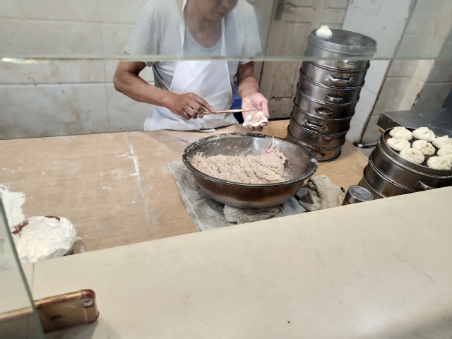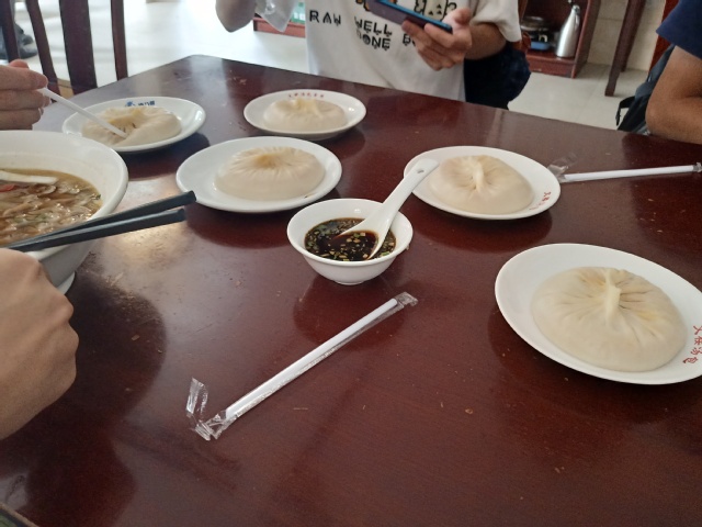 7月26日上午,团队成员们前往在当地享有盛名的文楼包子店。文楼蟹黄汤包可谓是淮扬菜的精品,在与老板交流时,老板自豪地说道:“蟹黄汤包要用好的料做,成本是高了点,但是祖传的方子不能变。”随后队员们又去了其他几家淮扬菜餐厅,并采访了店内的厨师、顾客。队长余志镇对队员们说道:“随着当地旅游业的发展,来淮安品尝淮扬菜的外地游客也越来越多。近年来也有不少以淮扬菜为主题的文化活动,大家对淮扬菜文化的了解也在加深。”