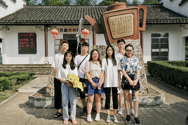 为了解优秀传统文化,进一步感受传统文化的魅力,并号召更多人重视和保护传统文化,来自建筑与设计学院三个不同专业的王可欣、钱志威、刘玮颖、韦紫奡、杨颜培、蔡涵、田简宁和杨洋八位同学组成了一支社会实践团队,在专业实习结束后踏上了宜兴文化之旅。团队由王可欣领队,刘玮颖任宣传员,辅导员郭丽婉担任指导老师。