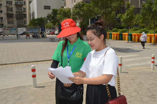 到达郑州之后,实践小组率先前往二七广场、郑西新区、郑东新区等标志性地段,对于郑州市区的环境概况进行总体了解。作为垃圾分类全国试点城市,郑州新老城区都展现出与以往不一样的精神风貌。实践小组了解到,目前郑州中心城区生活垃圾分类覆盖率已达到80万户,目标今年年底实现70%的覆盖率。为了深入了解郑州垃圾分类的实施情况,实践小组前往郑州市天楹环保垃圾分类示范小区进行调研与宣传。通过对工作人员的采访,实践小组首先了解到,郑州的生活垃圾现在主要分为:厨余垃圾、其他垃圾、可回收物和有害垃圾四类。工作人员说到,自本示范区开始实行垃圾分类以来,周围居民大力配合,极大提高了资源的回收利用效率与小区的治理水平。之后,小组成员通过张贴海报、分发传单等方式向周围市民普及垃圾分类知识,提高市民们对于垃圾分类的重视程度,赢得了小区管理人员与附近居民的好评。同学们还向工作人员深入了解了垃圾分类的具体流程以及处罚措施等。在采访附近居民的过程中,市民们表示会努力支持与贯彻落实垃圾分类措施,积极响应国家的环保号召。