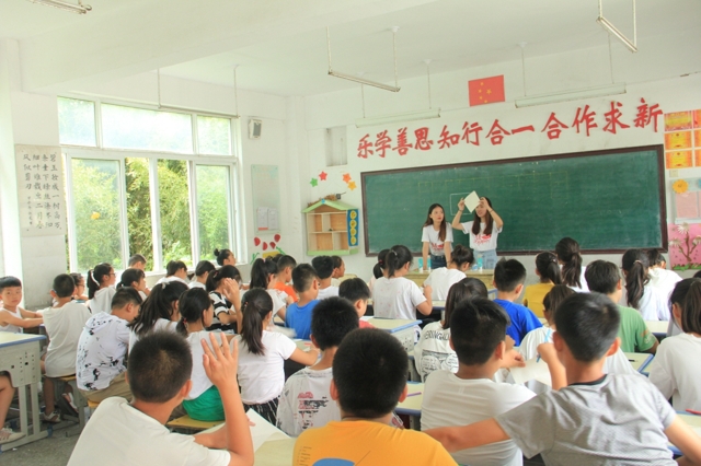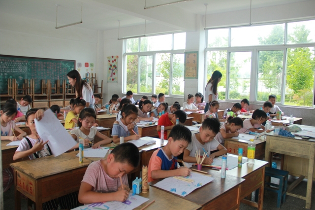 邳城镇镇南小学教育师资相对匮乏,科学教育和艺术教育更是薄弱环节,同时,学校里还有很多的留守儿童。在本次支教活动中,新青年实践团队发挥专业特长,对孩子们进行专业的艺术辅导。课堂上,支教的同学引导孩子们动手绘画,对孩子们进行了基础的美术教学。孩子们按照支教老师们的要求,绘画出一幅幅生动的图画。
