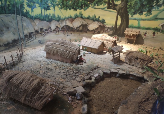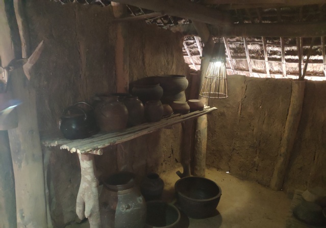 实践过程重点在于探访海南古村落。7月27日上午,实践团队前往槟榔谷,调研了当地的建筑、服饰,了解了黎苗的历史、风土人情以及一些当地特有的习俗。在槟榔谷内,团队成员们见到了海南黎苗少数民族的传统船型屋。船型屋是黎族祖先坐船来到海南岛上的发明和传承技艺,以竹木、黄泥、稻草树枝搭建而成,一般分为三间,头间为厨房和餐厅,中间为居室,尾间为生产、生活用具及杂物房。走入船型屋,屋中还居住着正在织布的阿婆,阿婆和同学们热情地打招呼。黎苗传统服饰的图案十分美丽,富有生活气息,大多为人的各个造型,有叉腰、举手等姿势。