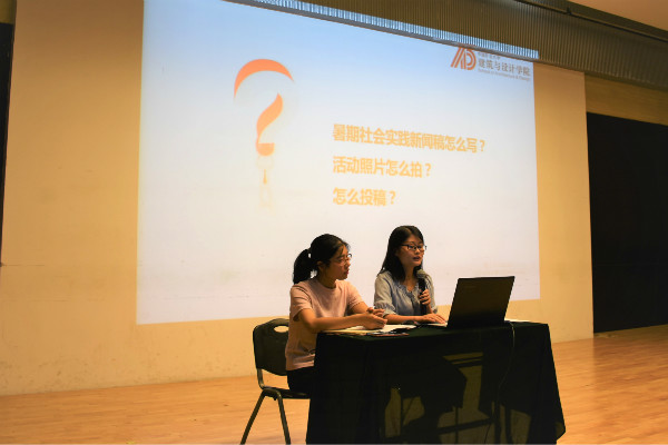 为提升大学生暑期社会实践的自主意识、务实意识,统一学生思想,加强对社会实践的认识和重视,保证2019年暑期社会实践高要求、高效率、高质量开展,7月5日下午3点,建筑与设计学院2019年暑期社会实践动员大会于学院楼二楼报告厅举行。院团委书记陈文雯、大学生传媒中心指导老师谢小雨及各实践项目负责人参加了此次会议,本次会议由设计学院团委实践部部长王可欣主持。