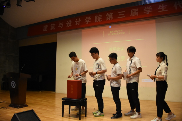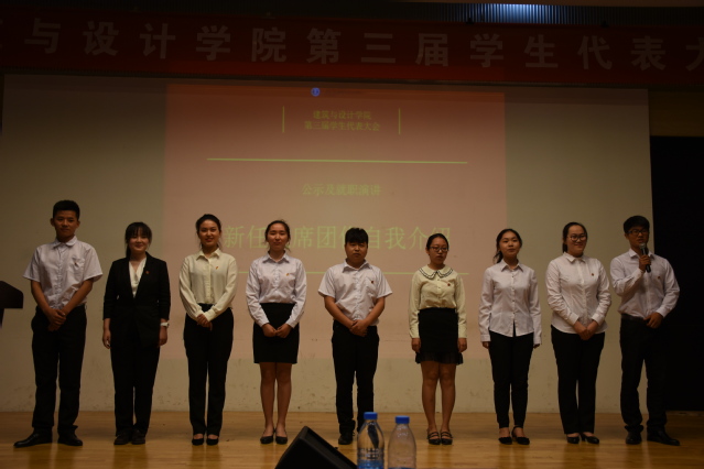 此次大会本着公平、公正、公开的原则,采取不记名的投票方式选举,产生了设计学院新一届的团委副书记、学生会主席。监票组组长唐铭璐汇报选票情况。随后,蔡大卫同学代表大会主席团宣布选举杨阳同学为第四届院团委副书记,魏铁飚同学为第四届院学生会主席。接着,新一届团委副书记杨阳(因杨阳同学本人身体原因住院治疗,由建筑17-1班徐锦添同学代为发言)和学生会主席魏铁飚进行就职演说。随后建筑与设计学院第四届学生会主席团上台亮相,并作自我介绍。