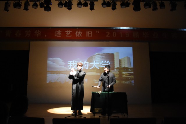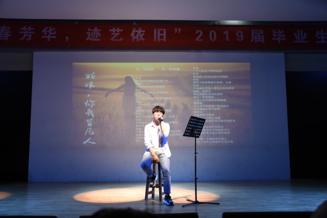 在晚会的第一篇章“遇见”,孙艺铭老师与同学们合唱了原创歌曲《设计未来》,相声表演《我的大学》引得大家连连欢笑,情景剧《同桌的你》声情并茂地表达了大学的青涩,歌曲串烧《五月天》让全场沸腾,一首原创歌曲《不为谁而做的歌》唱出了少年们的心思。在晚会的第二篇章“绽放”,钢琴足球表演《起起落落》点燃了全场的气氛,舞蹈《霜雪千年》古风十足,一曲《等待》诉说着别离的不舍,小品《全能练习生》爆笑全场,原创心理歌曲《姑娘,你我皆凡人》鼓励每位学子勇往无前做自己。在晚会的第三篇章“启程”,建筑一班带来了合唱《平凡之路》,歌曲《那些花儿》追忆着那些年的青春,19届毕业班辅导员通过诗歌朗诵《不说再见》,表达了对学生的不舍与祝福。