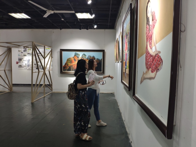 为了此次展览,毕业生们做了充足的准备,他们凭借自己扎实的专业知识以及对设计的独特理解做出了风格各异、创意纷呈的作品,向大家展示了艺术与众不同的魅力。本次展览研究方向涵盖了工业设计、视觉传达、景观设计、室内设计、美术学等多个专业方向。作品的题材涉及广泛,包括邳州纸塑狮子头的信息可视化设计、APP下的互联医疗信息可视化设计研究、镂空艺术在现代室内设计中的应用研究、非典型传统村落乡土文化空间营造策略研究、车销通物流信息服务平台优化设计及查询终端的开发、地铁空间视障者导向系统交互设计研究等。这些作品构思新颖、独出心裁,通过对社会发展的现实需要和艺术设计的融合创新,显示出了设计之美和思想的绽放。其中,展览中的美术作品也令前来观展的同学们赞叹不已。跃动的色彩和巧妙的构思展示了纯美的意境和新鲜的想象,呈现出蓬勃的艺术设计激情和旺盛的艺术创造力,给观众带来高雅的艺术享受。