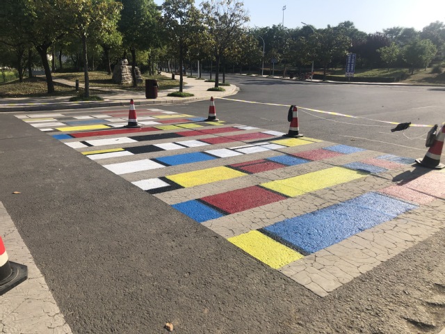 此次“彩色斑马线”绘制活动在确保符合交通安全法规的前提下,对校园内的部分斑马线进行色彩装饰,使校园斑马线色彩更加绚丽,视觉效果更加明显。亮丽的校园斑马线美化了校园环境,既为师生出行创造了一个安全愉悦的交通环境,也有助于增强师生的校园安全意识。