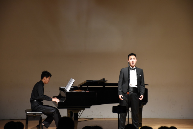 在下半场的开始,张圳琪向大家展示了他的声乐艺术指导作品。他邀请了声乐助演嘉宾王铁男,二人合作了两首风格迥异的作品。在著名的意大利歌曲《我要在海上建座王宫》的演奏中,他们完美地诠释了自己对乐曲的深刻理解。两位搭档还献上中国歌曲《拾彩贝》,在场的每位听众都沉浸在优美的旋律中。张圳琪独奏的肖邦之作——《肖邦第一谐谑曲》运用了大胆夸张的对比,特别是中部的抒情部分极大表现出了肖邦的风格。音乐会的最后,张圳琪与好友路馥玮一起为大家带来勃拉姆斯的四手联弹《匈牙利舞曲第二号》,热情奔放的音符回荡在现场,让人如痴如醉。音乐会演奏结束后,张圳琪的母亲上台讲述了张圳琪与钢琴之间感人的故事,专业导师李臻也对他给予了很高的评价,并为学生送上了自己真挚的祝福。而后,张圳琪为意犹未尽的观众返场演奏了自己的原创作品,在场观众纷纷报以热烈的掌声和欢呼声。