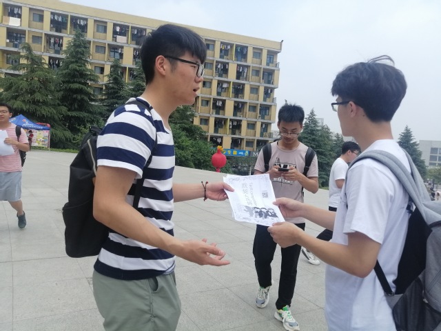 宣传前期,设计学院青春之光青年志愿者协会的志愿者们在负责人的组织下将制作好的宣传单进行打印,并提前在二食堂广场前做好场地布置。中午十二点整,随着人流量的增加,志愿者们有条不紊地开始了手上的工作。他们向同学们分发活动宣传单,详细介绍本次活动并邀请同学们扫码加群以获得后期活动的详细信息。与此同时,对于同学们提出的问题志愿者们也耐心地进行了相应的解答。伴随着校庆的到来,此次围绕校庆主题的活动引起广大学生的关注,同学们的参与热情愈发高涨,宣传工作也取得了预期的效果。除此之外,设计学院的志愿者们还利用晚上空余时间深入宿舍楼进行扫楼宣传,进一步加强了本次活动的宣传力度。