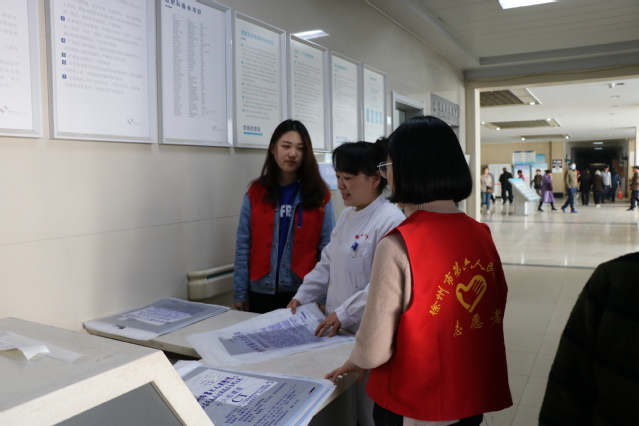 4月13日下午两点,建筑与设计学院青年志愿者协会的志愿者们来到徐州市第六人民医院开展义务导医志愿服务活动。