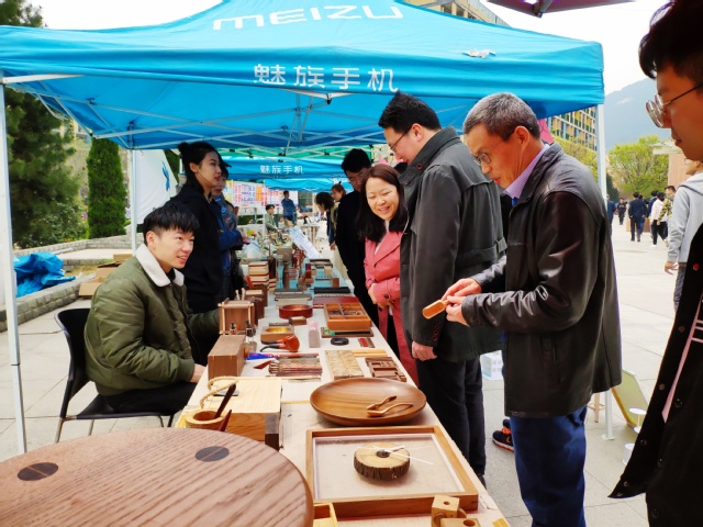 展览前期,设计学院科技创新创业协会主席史正彬指导科协成员认真细致地布置展览会场,并对他们详细讲解了本次展览会的注意事项。此次展出的作品种类繁多,而且颇具学院特色,包括出自木工坊的木艺作品、绘画作品、建筑设计图纸和学生创意作品等等。优质丰富的作品吸引了众多师生,展览期间工作人员为大家认真地讲解作品的设计理念和巧妙创意,同学们听后连连称赞其精美巧妙并拍照留念。随后,朱小军副教授、孙艺铭老师和姬妲嫤老师在参观完展出作品之后,一致表示展品赋有创意感和个人特色,同时也针对展览会提出了建设性的意见和建议。