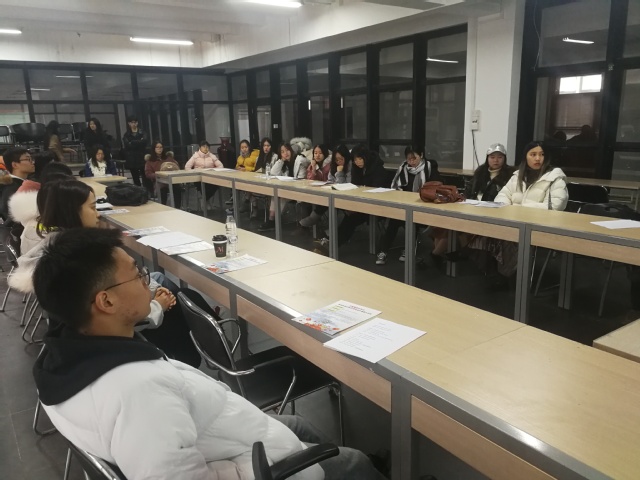 讲座伊始,新东方的两位老师介绍了出国留学的总体情况和基本条件。接着,张超老师介绍了申请澳大利亚、新西兰的大学需要准备的材料以及一些硬性条件,他提醒同学们,如果有意向出国,一定要提前做各项准备工作。接着是王雅婷老师结合PPT和具体案例,生动地为大家介绍了如何申请美国、加拿大的大学。讲解过程结束后,同学们根据出国留学意向国家进行分组,就自己的疑惑与老师们进行了讨论,老师们悉心解答了同学们提出的各种问题。