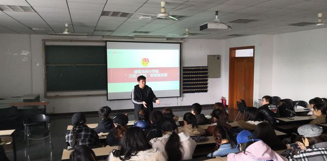 班会伊始,曹炎磊老师为同学们讲解了“三到一构建”的内容与思想,“三到一构建”是指“思想到支部”、“榜样到支部”、“代表到支部”和“构建活力支部团日活动体系”,通过“思想到支部”,把学习宣传贯彻习近平新时代中国特色社会主义思想作为重要政治任务,提高青年学生的思想政治素质,坚定理想信念。通过曹炎磊老师的讲解,同学们对此有了一定了解并感触甚多,知道了国家时事政策对大家的生活、学习等诸多方面都有着很大影响。曹炎磊老师还通过列举自身以及自己周围人的学习经历、生活感悟来告诉大家要拿出一个积极的态度去面对自己的学习和生活,鼓励大家为了自己的将来现在要多付出一些努力,让大家懂得要提前为自己未来多做一些努力。