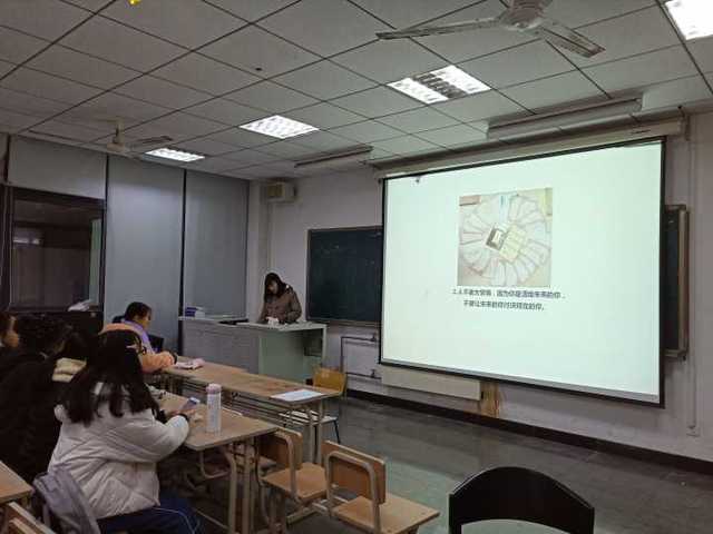 最后,郭丽婉老师与同学们展开了交流。郭老师首先教诲同学们应悉心听取他人的意见,学会从别人的经验中推敲出今后的道路该怎么走。接着她向同学们讲述了自己的亲身经历。郭老师强调了时间观念的重要性,她希望同学们不要成为“只是看起来很努力”的人,将功夫流于形式,对此,郭老师还分别向同学们介绍了提高碎片化时间利用率的方法。交流最后,郭老师勉励同学们一定要不懈怠,尽管适应期过去了也万万不可放松,让自己充实过好每一天。