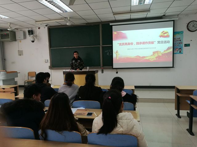 为贯彻学习党的十九大精神,立足新时代,肩负新使命,强化学生党员党性观念和党员意识,充分发扬学生党员模范带头作用,11月28日下午1点,建筑与设计学院18级建筑城规研究生党支部于博学楼A302教室召开以“党员亮身份,践承诺做贡献”为主题的党日活动。全体党员同志准时参加,本次主题活动由18级建筑城规研究生党支部书记姚志豪主持。
