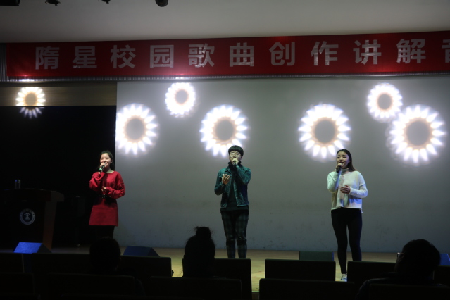 为了让同学们更加了解校园歌曲创作,引导同学们积极参与校园歌曲创作,丰富矿大校园文化生活,11月21日晚7点,建筑与设计学院音乐系在学院二楼报告厅举办了隋星校园歌曲创作讲解音乐会。音乐会由隋星老师担任主讲人,音乐系全体师生和广大音乐爱好者一同欣赏了此次音乐盛宴。