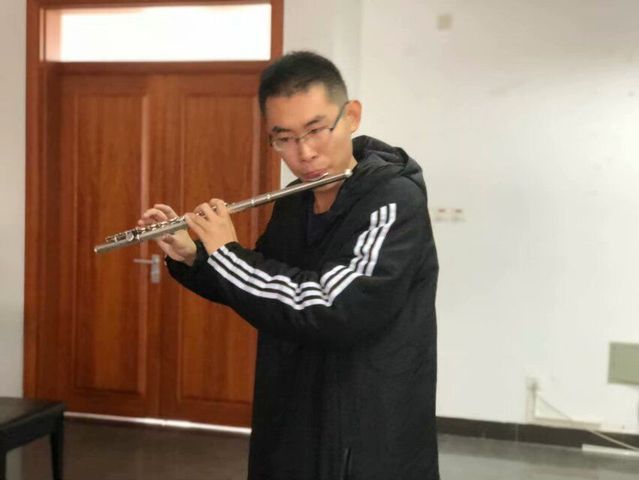 刘子潇同学在表演笛子独奏《渔舟唱晚》