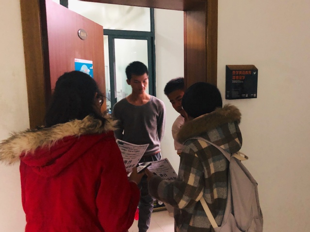 为提升“寻找丢失的公益金”活动效果,11月13日晚九点,建筑与设计学院青春之光青年志愿者协会志愿者们分别在桃苑四号宿舍楼、竹苑四号宿舍楼进行了扫楼宣传。