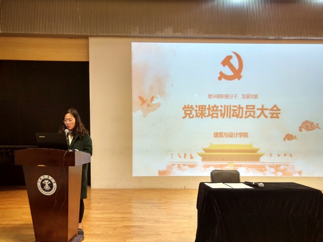 为进一步加强学院党员队伍建设,提高新一届入党积极分子、发展对象的党性觉悟并强调党课相关纪律要求,10月25日中午12:50,建筑与设计学院于学院报告厅召开第54期党课动员大会。院党委副书记范韶维、兼职组织员龚雨佳以及全体第54期积极分子、发展对象参加了此次会议,会议由龚雨佳主持。