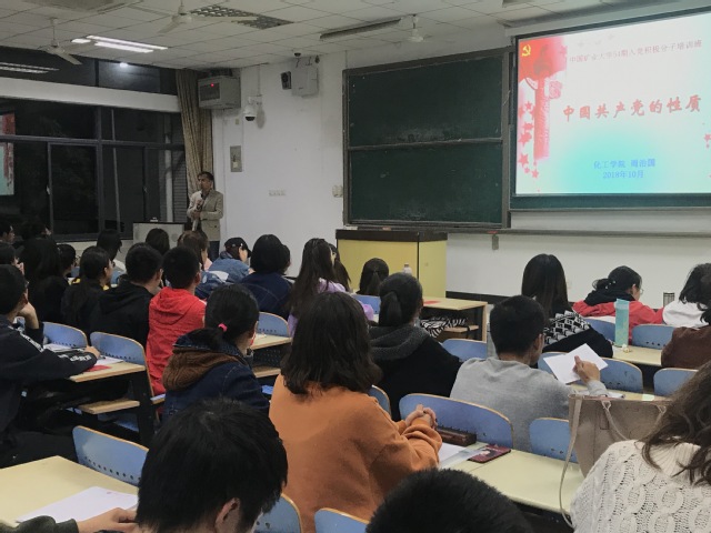 为了进一步加强第54期入党积极分子对党的基本理论知识的系统学习,提高入党积极分子的理论水平,确保新发展党员的质量,10月27日晚上7时,建筑与设计学院全体第54期入党积极分子于博学楼一区A101参加了党课培训第一课。化工学院的周治国老师担任本次党课的主讲人。