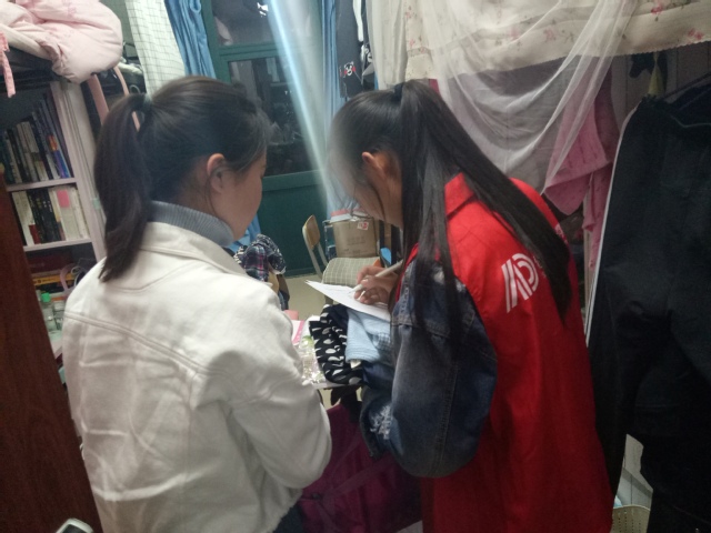 服务分队队员们准时在二食堂广场集合完毕。队长张璐强调,本次活动的目的是为了募集善物,帮助贫困家庭,扫楼时大家一定要注意尽量不打扰同学,与人沟通时,注意礼貌。之后,副队长秦苏东给队员们分发了分队马甲和宣传单等活动用品,随后按照前期分组分别于竹四、桃四宿舍楼之间展开扫楼募捐活动。分队前期利用公众号进行了线上宣传工作,很多同学对此次募捐活动都已经有了大致了解,他们参加活动的热情很高,慷慨地捐出自己的衣物、书本和学习用具等闲置物品。有的同学还主动带动整个宿舍捐献物品。遇到不了解活动的同学,队员们耐心地为其解答,主动介绍此次募捐活动。