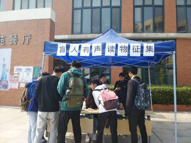 为了满足盲人群体对有声读物的需求,丰富盲人的精神文化家园,10月24日,设计学院青年志愿者协会在一食堂、二食堂广场开展“国际盲人日——盲人有声读物征集”活动。
