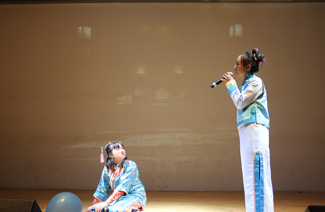 晚会下半场,四指连弹《小蓝恰恰》节奏明快,旋律动人。与时下热剧接轨的小品《延禧攻略》风趣幽默,引得全场捧腹大笑。啷个哩个啷乐队为大家带来歌曲《对自己开了一枪》,默契十足。相声《打广告》通过诙谐的语言反映了对社会现实问题的思考。最后,全体学生组织主席团为新生们献上串烧歌曲《小幸运和我的大学》,在祝福中晚会结束。