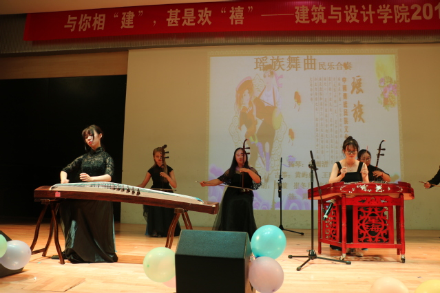整场晚会节目形式多种多样,精彩纷呈,气氛融洽。晚会在视频《设计未来》悠扬的旋律中拉开帷幕,此视频由设计学院老师和学生合力创作而成,让新生感受到来自学院的温暖。开场舞《On the rhythm》音符跳动,节奏欢快,展现青春风采。新生辅导员郭丽婉老师和闫坤茹老师与四位年级助理为全体新生送上《凉凉》和《暖暖》两首歌,惊喜全场。接下来是小品《以貌取人》、民乐合奏《瑶族舞曲》、歌曲《不忘初心》,精彩不断,引人入胜。环设三班全体带诗朗诵《我是00后》,展现新时代少年的蓬勃朝气。