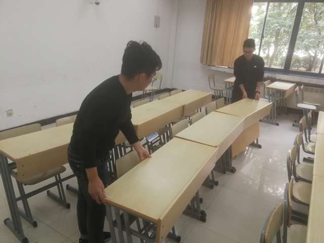 各位党员和团员们前往不同的教学楼与各个楼层开展教室环境建设活动。有的同学合作整理了教室中的桌椅,有的同学给墙壁上的开关贴上标签,写上相对应的顶灯、风扇位置。教室数量很多,同学们人手有限,但通过合作、坚持,教室的整体环境都有了很大改善。其中一位同学运用建筑学专业知识解释道:“教室空间中桌椅的布置其实是会影响到整个教学空间的质量,进而影响到同学们的学习心态与效率的。因此,整理教室桌椅其实是一个既简单又高效的提升空间环境的方法。”