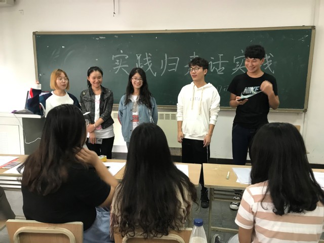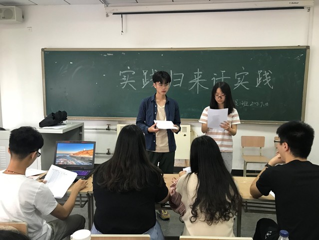 报告会开始前,班长下发评定表格,并简单介绍评定标准。随后,同学们依次上台,配合PPT展示自己的暑期社会实践成果,并与大家分享此次实践过程中遇到的趣事及实践结束后的感悟。有的同学从家乡的方言、戏剧等方面入手,调查研究本地的传统文化;有的同学走访多个艺术院校,感受不同学校的艺术氛围;还有同学组队去到延安,重走毛主席当年走过的路,体验中国的红色文化……每位同学讲述时,台下同学都入神听着。待所有团队分享完自己的实践成果后,班长做了简短总结。