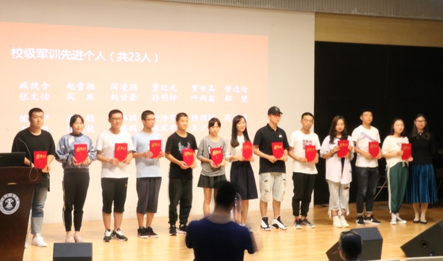 接着是2018级军事训练总结与表彰环节。会议对2个校级军训先进集体、23名校级军训先进个人以及29名院级军训先进个人进行了表彰。18级辅导员郭丽婉和兼职辅导员闫坤茹为获奖班级和个人颁奖。