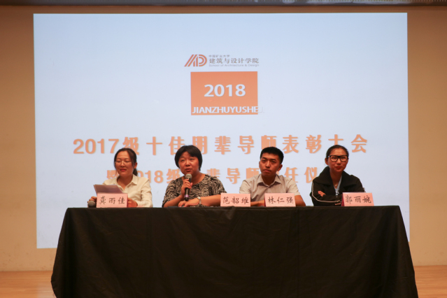 为了表彰先进,同时介绍新聘朋辈导师,9月26日下午4时,建筑与设计学院举办了2017级十佳朋辈导师表彰大会暨2018级朋辈导师聘任仪式。设计学院党委副书记范韶维、党员工作站指导老师林仁强、2018级辅导员郭丽婉、17级学生朋辈导师、18级学生朋辈导师及设计学院2018级全体学生参加了此次会议。会议由院兼职组织员龚雨佳主持。