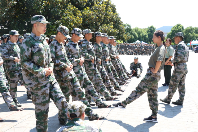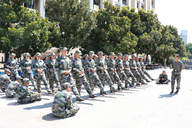 加强排选拔标准严格、训练要求高。结合个人意愿,经过严格筛选,学院选拔出了军训加强排。加强排各位同学积极配合、刻苦训练,凭借过硬的身体素质和坚定的意志很快便适应了高强度的训练。他们反复练习军姿、三大步法、方阵等队列内容。“听党指挥,能打胜战,作风优良,一二三四”,口号声铿锵有力,气势恢宏。新生辅导员郭丽婉和兼职辅导员闫坤茹时刻关注着加强排的训练情况,时常还亲身示范指导,陪同学们一同训练。