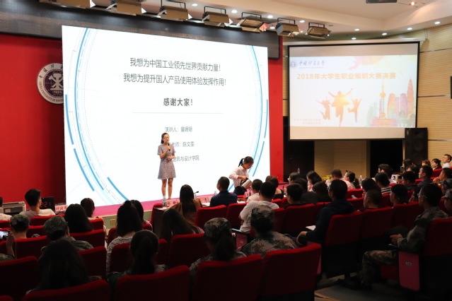 9月11日晚,由党委学生工作部、招生就业工作处主办的中国矿业大学2018年大学生职业规划大赛决赛在南湖校区图书馆报告厅举行,我校各学院2018级新生代表现场观摩比赛并为选手助威。本次大赛旨在促进大学生职业生涯规划的认知和抉择反思能力,设计学院童姗姗参加比赛,获得第一名的好成绩。辅导员陈文雯作为指导老师被评为“优秀指导教师”。