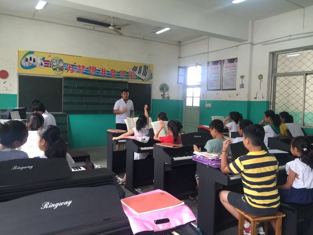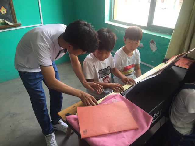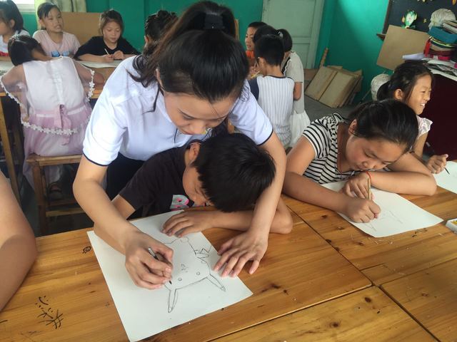 艺术课堂内容多样、形式活泼。音乐课上,队员们教授孩子们演奏钢琴,队员朱子龙以一对一的形式教授钢琴课程,队员王佳栋不停地走动检查孩子们的学习状况,回答孩子们在练习中遇到的各种问题。孩子们课上听课十分认真,课后刻苦练习。美术课上,队员张志艺一笔一画地教孩子们画各种动物,队员单茂萍俯下身子,不时地给予孩子们指导并及时指出他们绘画中存在的问题。手工课上,队员们教小学生们利用黏土制作手工作品,孩子们看到红色的黏土在短短几分钟内就变成一朵美丽的玫瑰花,纷纷跃跃欲试。课程期间,队员们还利用击鼓传花、丢手绢、才艺展示等小活动调动孩子们的学习积极性,激发其对艺术课堂的兴趣,让其感受到艺术的魅力。