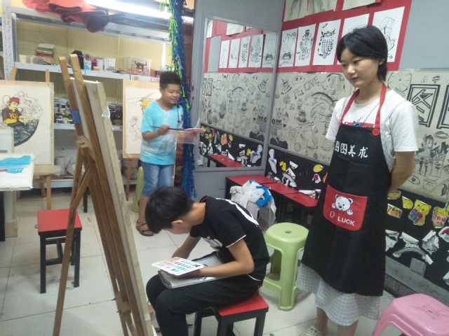 活动开始前,实践团队提前与画室负责人取得联系,经过沟通与协调, 6名队员分别被安排在低龄、漫画、素描和硬笔书法班,每个班级13-15名学生。为了保证课程进度与教学质量,队员们在实践开始前,进行了较为集中的集体备课,集体商讨上课内容、注意事项及应对措施,为实践活动的顺利进行奠定了基础。