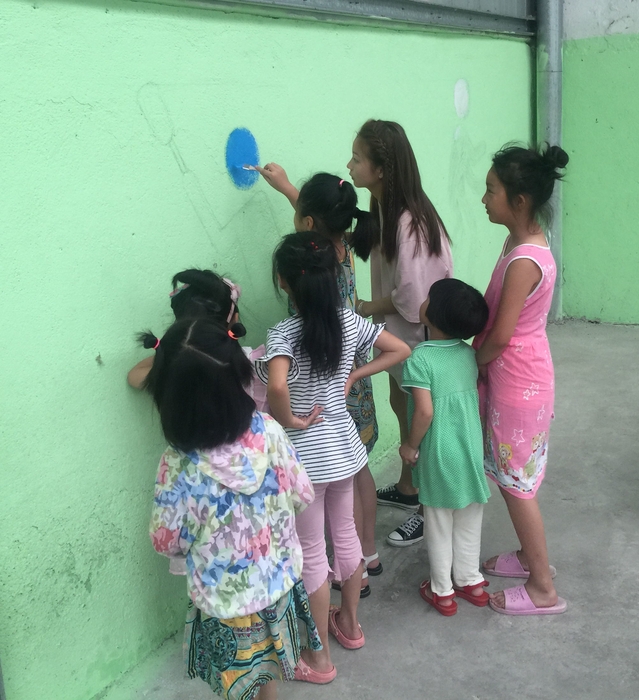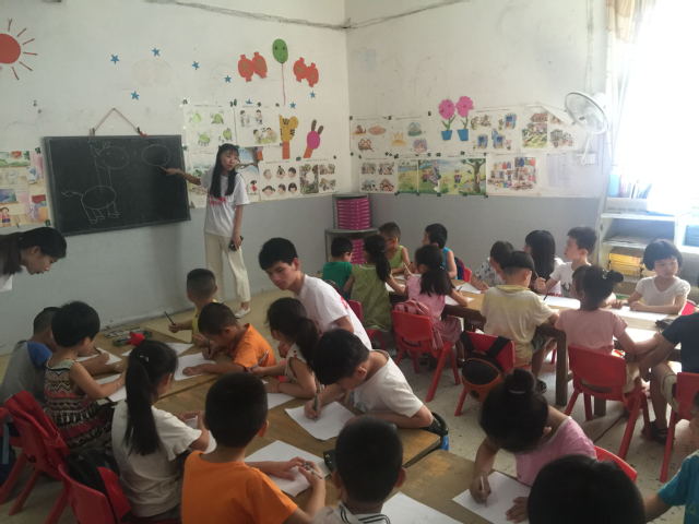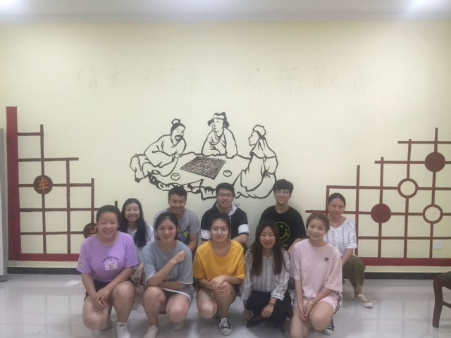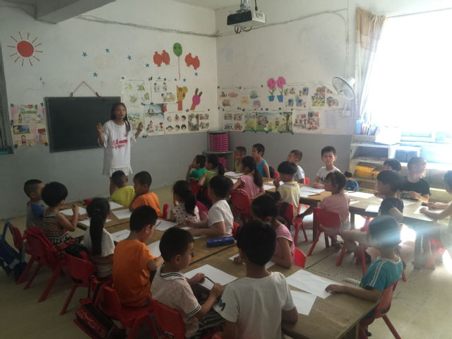 7月15日上午8点,当地负责人带领实践团队成员前往实践地点。实践团队分为三组,两组负责墙体彩绘和室内彩绘,绘画内容主要体现十九大精神、社会主义核心价值观和当地风土人情等;一组负责教授当地小学生音乐、美术、剪纸等。室外墙绘组队员们用铅笔先在墙壁上打好底稿,用颜料认真描绘。在绘画过程中,队员们的欢声笑语和新颖的作画方式吸引了村民们的驻足,许多小朋友也主动参与进来,和实践团队成员共同体验墙绘的乐趣。室内彩绘组队员们将中华象棋文化与绘画相结合,创作了“精彩对弈,棋乐融融”的墙绘作品,村民对此大加赞赏。音乐教学组队员发挥自己的专业特长,教当地小学生唱儿歌。小朋友们认真学习歌唱,学习后还有小朋友主动举手为大家演唱,现场气氛活泼热闹。尽管一天的实践活动使队员们疲惫不堪,但能够发挥专业特长、走入乡村、服务群众,这也让队员们获益匪浅。