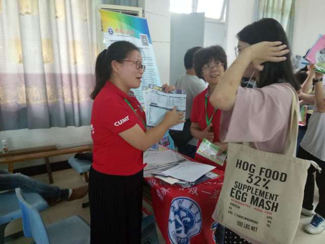 在招生咨询现场,党支部成员积极热情地为考生及家长发放我校招生宣传手册,通过手机视频和图片向他们展示学校的硬件设施、校园环境等。诸如“多少分能上矿大?”、“矿大有哪些优势学科?”“有哪些理工科专业适合女孩子学习?”等问题不断地萦绕在党支部成员的耳边。党支部成员根据学校往年的各类招生数据,耐心细致地解答家长及考生的疑问,为考生填报志愿提供合理的建议。为了方便与考生及家长的后续交流,支部成员不仅及时做好咨询总结,记录重点意向考生,还建立了包括学院领导老师、生源地优秀在校生及意向考生在内的志愿报考咨询微信群,吸引了近100位考生及家长加入。在后期志愿填写期间,支部成员还根据登记信息主动联系高分考生,动员他们A志愿报考矿大。