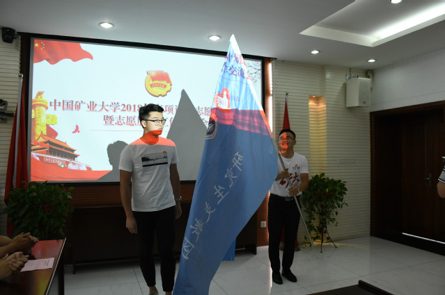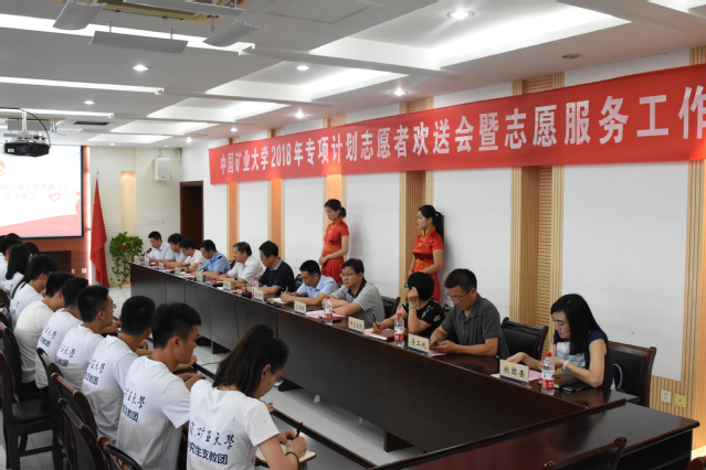 接下来是团旗交接仪式。随后,两位志愿者代表发言,与会各部门负责人、各学院领导分别寄语,勉励大家在基层的岗位上努力工作,锻炼自我。最后,校党委副书记曹德欣老师向各位志愿者作了寄语。他首先肯定了我校专项计划志愿者多年来在工作上取得的成绩,并代表学校向已经出色完成工作凯旋的同学们表示热烈的欢迎,他希望每位同学能够立足于基层,勇于奉献,发挥青年学生的光和热,展现矿大学子风采。他还指出,志愿服务能够体现出每个人奉献的态度,既然选择了,就是一份责任,每位矿大学子都要认真对待,不辜负党和国家的期望。会后,与会人员进行合影留念。